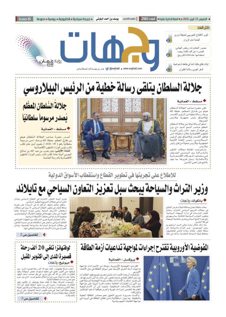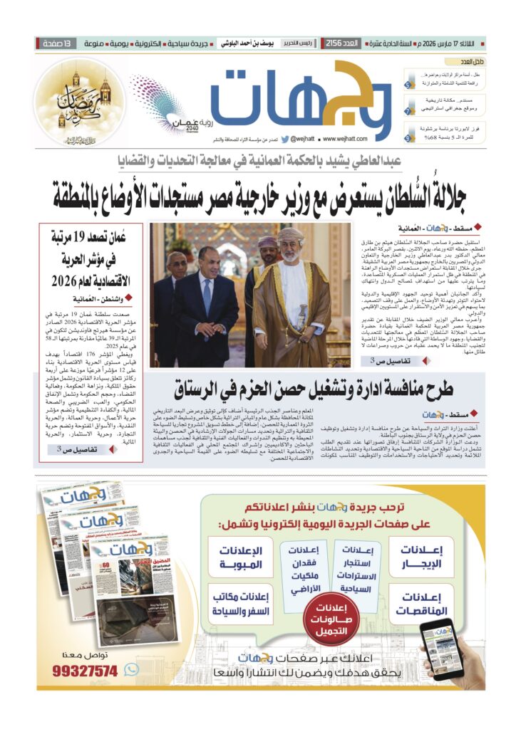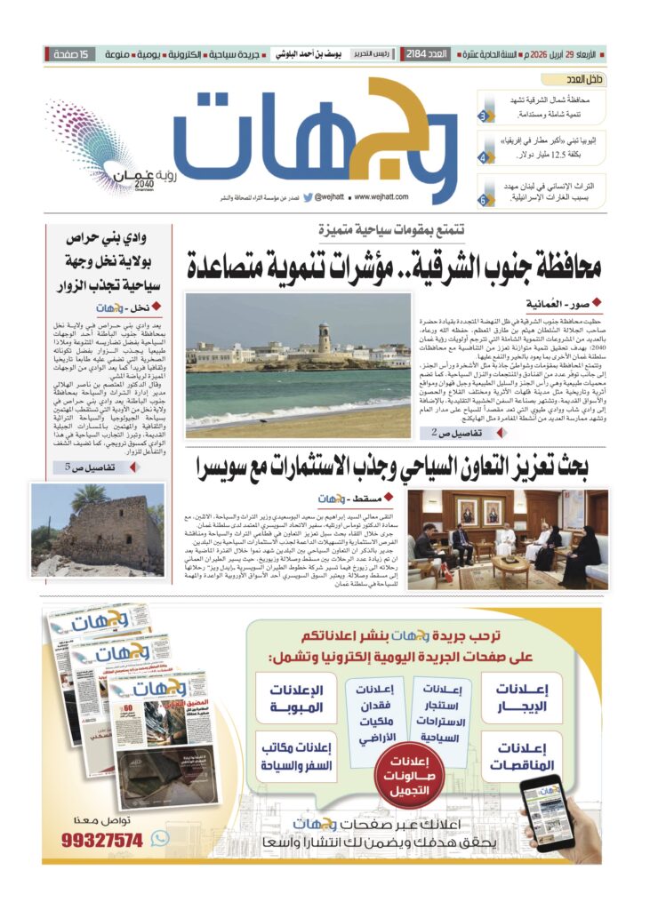 جريدة وجهات أول جريدة عمانية مختصه بالسفر و السياحة