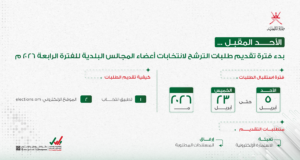 مسقط – وجهات| تبدأ يوم الأحد 5 من أبريل الجاري فترة تقديم طلبات الترشح لانتخابات أعضاء المجالس البلدية للفترة الرابعة، وتستمر لغاية يوم الخميس 23 أبريل 2026م. وتدعو الوزارة الراغبين في الترشح ممن تتوفر فيهم شروط حق الترشح لعضوية المجالس البلدية إلى تقديم طلباتهم عن طريق تطبيق انتخاب أو الموقع الإلكتروني للانتخابات (elections.om)، بعد تعبئة الاستمارة الإلكترونية المعدة لذلك، مع ...