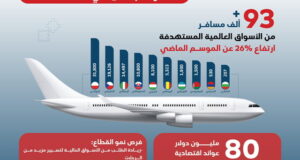 مسقط – وجهات | نشرت وزارة التراث والسياحة أبرز مؤشرات أداء قطاع الطيران العارض للموسم السياحي 2024/2025.فقد اشارت الوزارة إلى قطاع الطيران العارض ساهم بنحو 80 مليون دولار كعائد اقتصادي من حيث الإقامة والتنقلات والرحلات السياحية.حيث بلغ عدد الرحلات العارضة 588 رحلة خلال 2024 / 2025، مقارنة مع 466 رحلة في موسم 2023 / 2024.وبلغ عدد المسافرين عبر هذه الرحلات ...