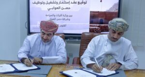مسقط – العُمانية| وقّعت وزارة التراث والسياحة مع مؤسسة حصن العوابي عقد لإدارة وتشغيل وتوظيف حصن العوابي بولاية العوابي بمحافظة جنوب الباطنة. وقع الاتفاقية سعادة المهندس إبراهيم بن سعيد الخروصي وكيل وزارة التراث والسياحة للتراث، وعبد الحميد بن عبد الرحمن الخروصي رئيس مجلس إدارة مؤسسة حصن العوابي. ويأتي توقيع هذه العقد تعظيماً للاستفادة من التراث الثقافي ومساهمته في النمو الاقتصادي؛ ...