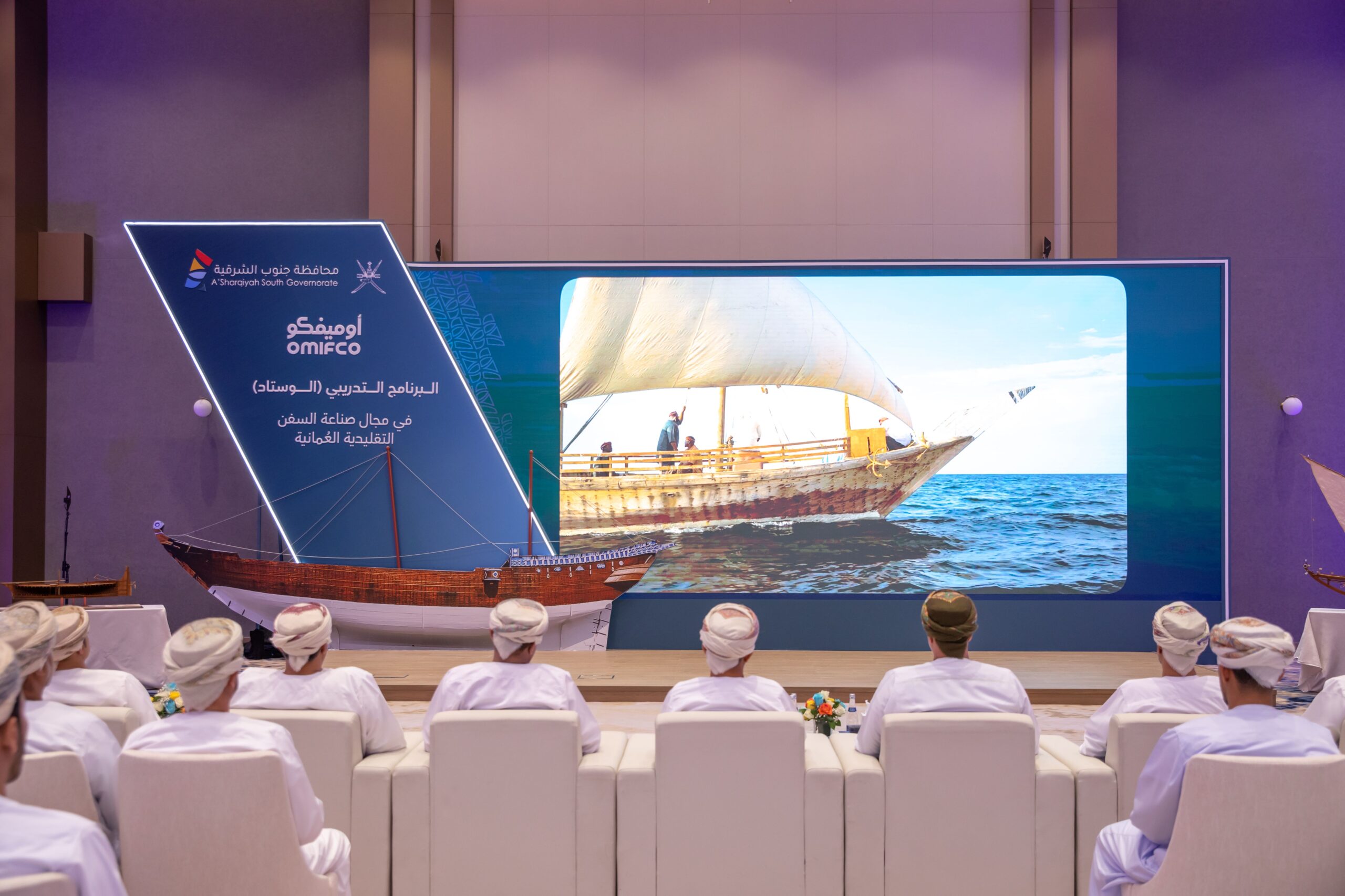 كما تضمّن الحدث كلمة لسعادة المحافظ، ولقاءات مع أعضاء الفريق المختص بإعداد مواصفات السفن التقليدية، تخلّلها استعراض مراحل العمل بالبرنامج خلال عام 2024، بالإضافة إلى إطلاق الهوية البصرية والملف التعريفي للمبادرة.
