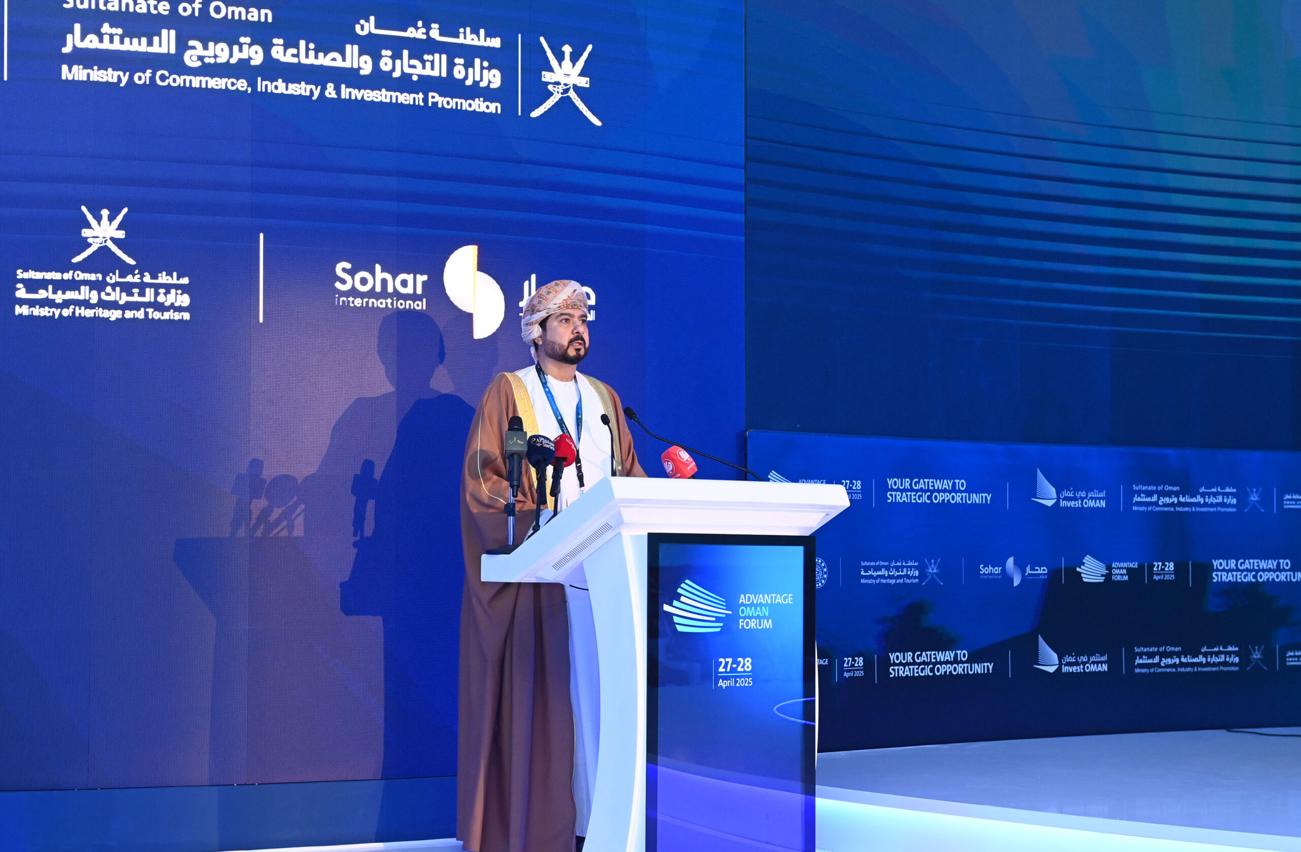 رعى صاحب السُّمو السّيد شهاب بن طارق آل سعيد، نائب رئيس الوزراء لشؤون الدفاع، اليوم، انطلاق فعاليات أعمال منتدى الاستثمار الدولي الأول “أدفانتج عُمان” الذي تنظمه وزارة التجارة والصناعة وترويج الاستثمار في منتجع سانت ريجيس – الموج بمسقط، لمدة يومين بمشاركة أكثر من 250 شخصية من كبار المسؤولين وصنّاع القرار والمستثمرين الإقليميين والدوليين ويركز على أن سلطنة عُمان وجهة استثمارية واعدة.