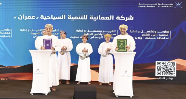 جاء ذلك في خلال حفل رسمي أقيم اليوم تحت رعاية معالي سالم بن محمد المحروقي، وزير التراث والسياحة، في فندق ماندرين مسقط، بهدف تعزيز التنمية المستدامة وحماية النظم البيئية وتفعيل السياحة والتعليم البيئي وزيادة الإيرادات وتنويع مصادر الدخل، وضمان استدامة الموارد الطبيعية للاجيال القادمة.