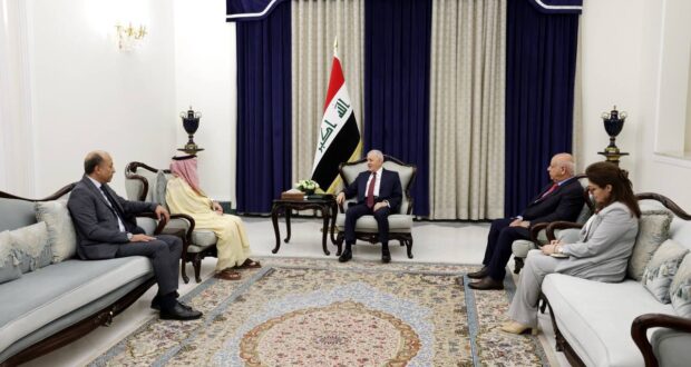 استقبل رئيس جمهورية العراق عبد اللطيف جمال رشيد بقصر السلام، معالي الدكتور بندر بن فهد آل فهيد رئيس المنظمة العربية للسياحة والوفد المرافق بحضور معالي وزير الثقافة والسياحة والاثار الدكتور أحمد فكاك البدراني، وذلك على هامش أعمال القمة العربية الخامسة التنموية الاقتصادية الاجتماعية والمنعقدة خلال الفترة من 13 إلى 17 مايو 2025 ببغداد.