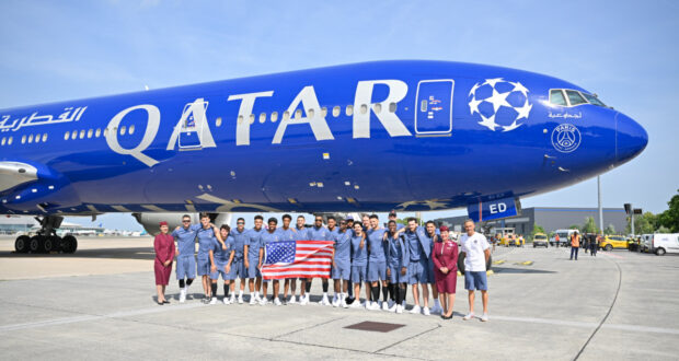 غادر نادي باريس سان جيرمان مطار باريس شارل ديغول على متن طائرة الخطوط الجوية القطرية من طراز بوينغ 777 المزدانة بحلة دوري أبطال أوروبا مع شعار النادي على الطائرة، وذلك قبل إنطلاق فعاليات البطولة الجديدة للفيفا، بطولة كأس العالم للأندية ™FIFA 2025 في الولايات المتحدة.