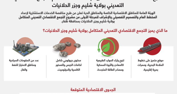 أعلنت الهيئة العامة للمناطق الاقتصادية الخاصة والمناطق الحرة طرح مناقصة الخدمات الاستشارية لإعداد المخطط العام والتصميم التفصيلي والإشراف للمرحلة الأولى من مشروع التجمع الاقتصادي التعديني المتكامل بولاية شليم وجزر الحلانيات بمحافظة ظفار والذي تشرف عليه المؤسسة العامة للمناطق الصناعية “مدائن “.