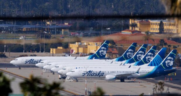 وفي أبريل 2024، أوقفت خطوط طيران ألاسكا أسطولها بالكامل عن العمل بسبب مشكلة في نظام حساب وزن وتوازن طائراتها، وذلك بعد أشهر قليلة من انفجار باب طائرة بوينج 737 ماكس 9 التي تشغلها المجموعة أثناء تحليقها.