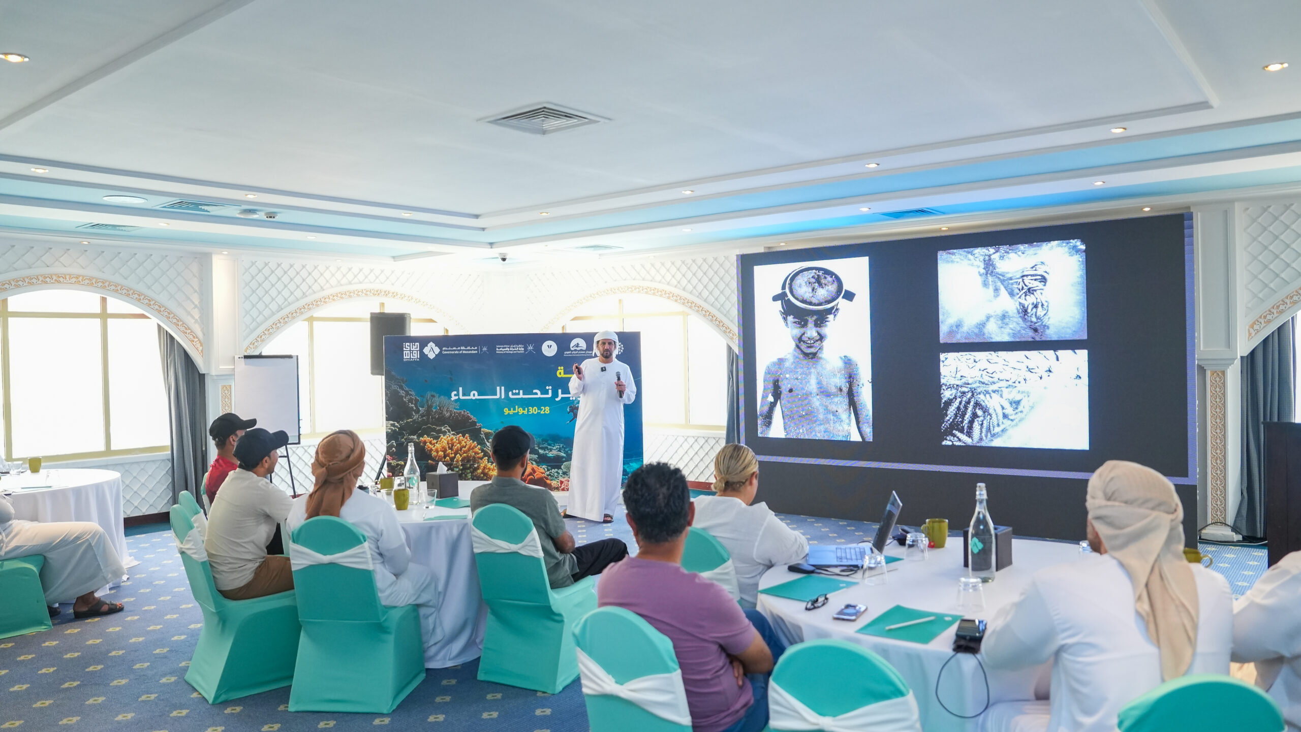 في خطوة تعكس التقاء الفن بالبيئة والسياحة، اختتمت في ولاية خصب بمحافظة مسندم ورشة التصوير تحت الماء، والتي استمرت لثلاثة أيام، بمشاركة نخبة من الغواصين والمصورين المهتمين بتوثيق الحياة البحرية. وقدمها المصور الإماراتي العالمي سعادة علي خليفة بن ثالث، الأمين العام لجائزة حمدان بن محمد الدولية للتصوير الضوئي، وأحد أبرز الأسماء في مجال التصوير الوثائقي في العالم.