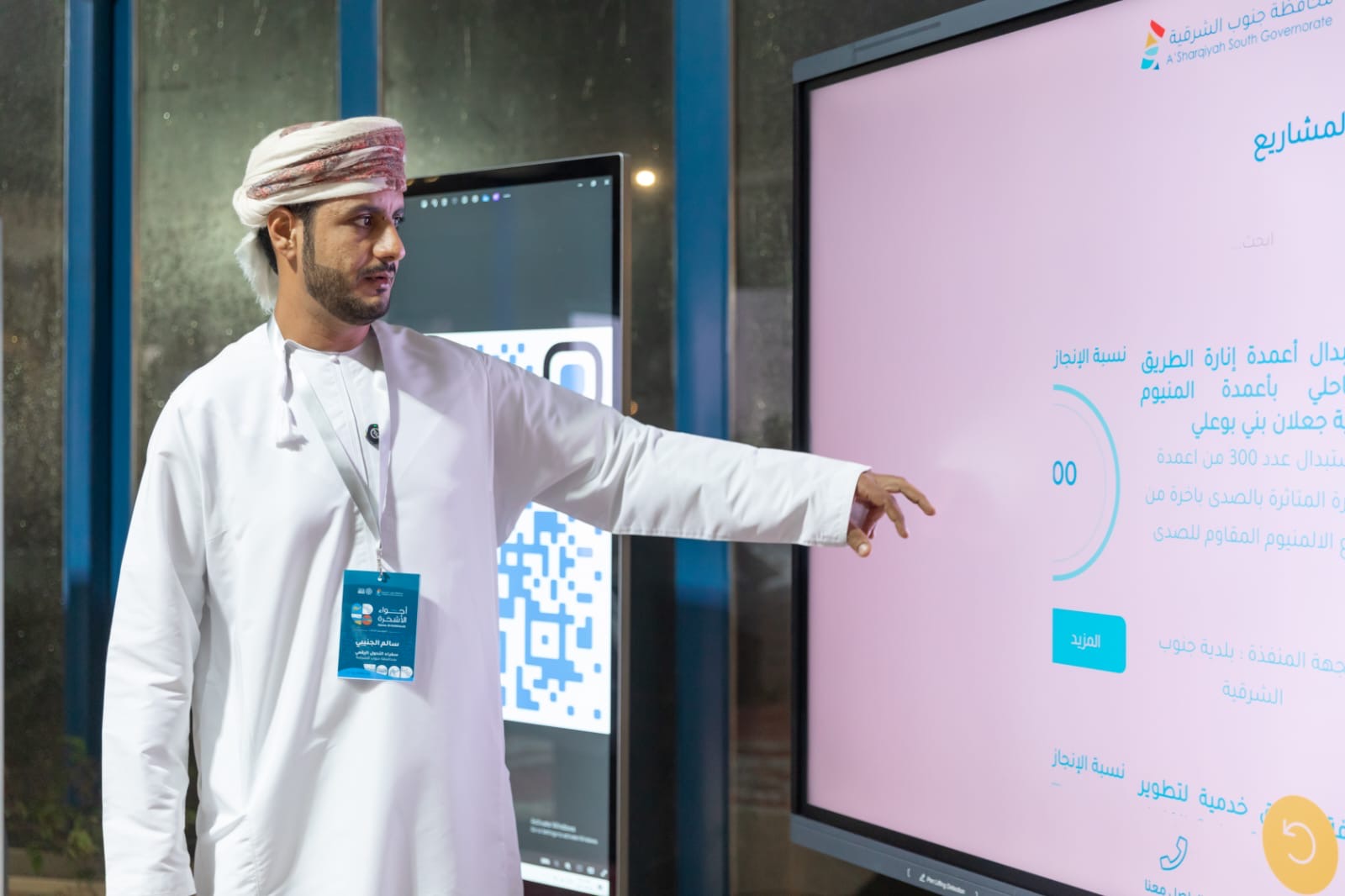 كما خُصّص جزء من الركن لاستعراض تطبيق “تجاوب” كمنصة رقمية تتيح للمواطنين والمقيمين والزوار التفاعل المباشر مع الجهات المختصة، وتقديم الملاحظات والاستفسارات إلكترونيا، بما يعزّز كفاءة الخدمات ويواكب التحول الرقمي في المحافظة.