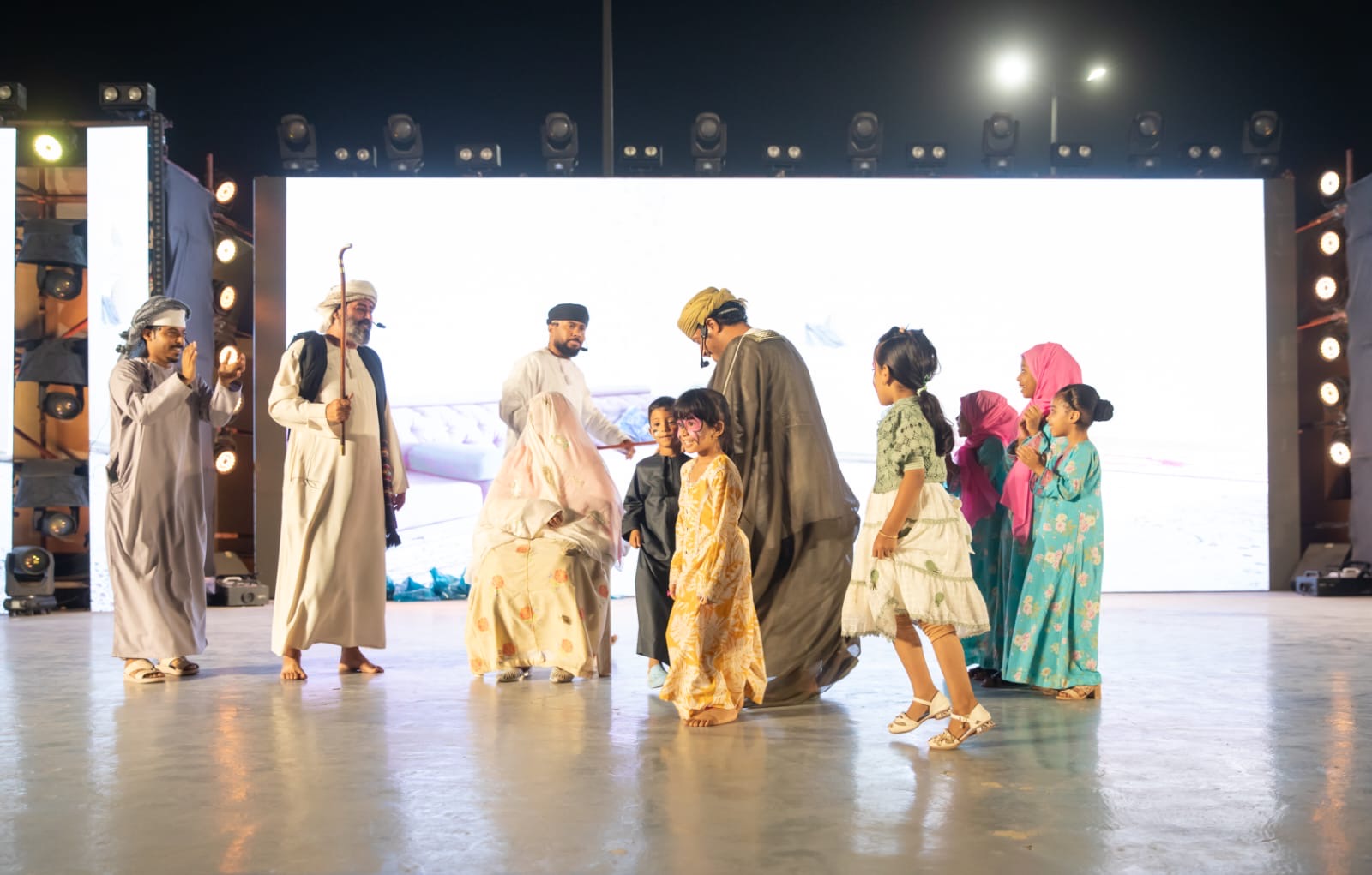 وفي مسرح الحديقة العامة، تواصلت الفعاليات بفقرة مخصصة للأطفال، أعقبتها المسرحية الاجتماعية “يا فرحة ما تمت”، التي طرحت قضايا مجتمعية بقالب درامي تفاعلي، نالت إعجاب الجمهور وتفاعله.