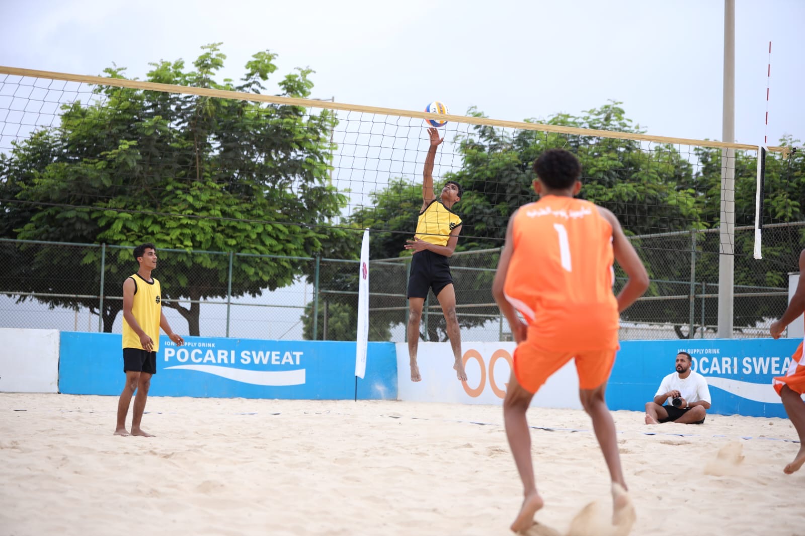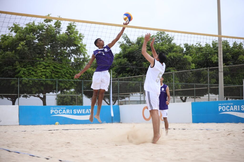 وفي مسابقة الكرة الطائرة الشاطئية، أُقيمت ست مباريات ضمن الجولة الأولى؛ حيث فازت تعليمية جنوب الشرقية على تعليمية ظفار بشوطين نظيفين، وبالنتيجة ذاتها تفوقت تعليمية الداخلية على تعليمية شمال الشرقية، وفي اللقاء الثالث، تغلبت تعليمية شمال الباطنة على تعليمية مسندم بشوطين دون مقابل، كما فازت تعليمية مسقط على تعليمية جنوب الباطنة بالنتيجة نفسها في المباراة الرابعة.