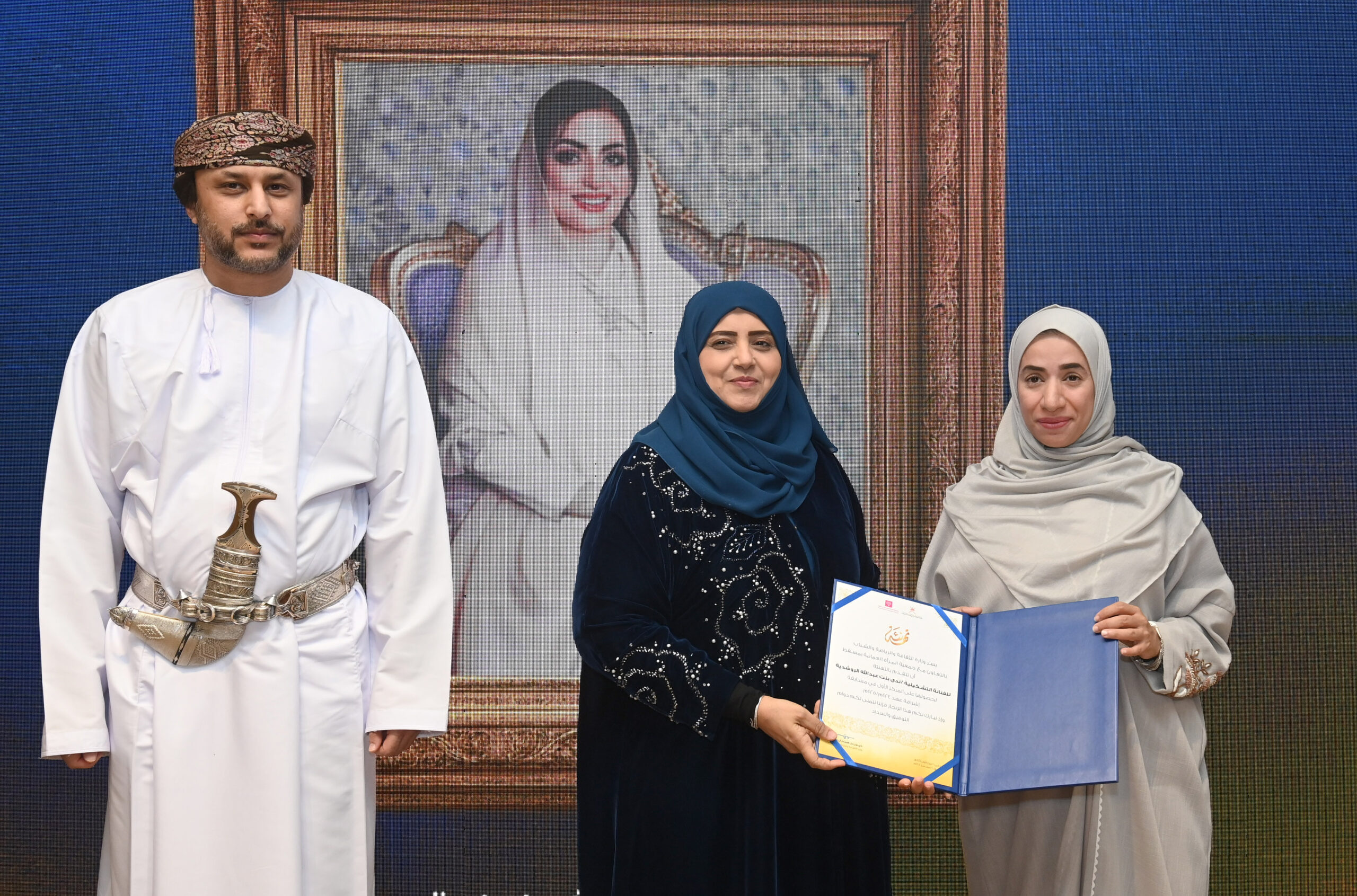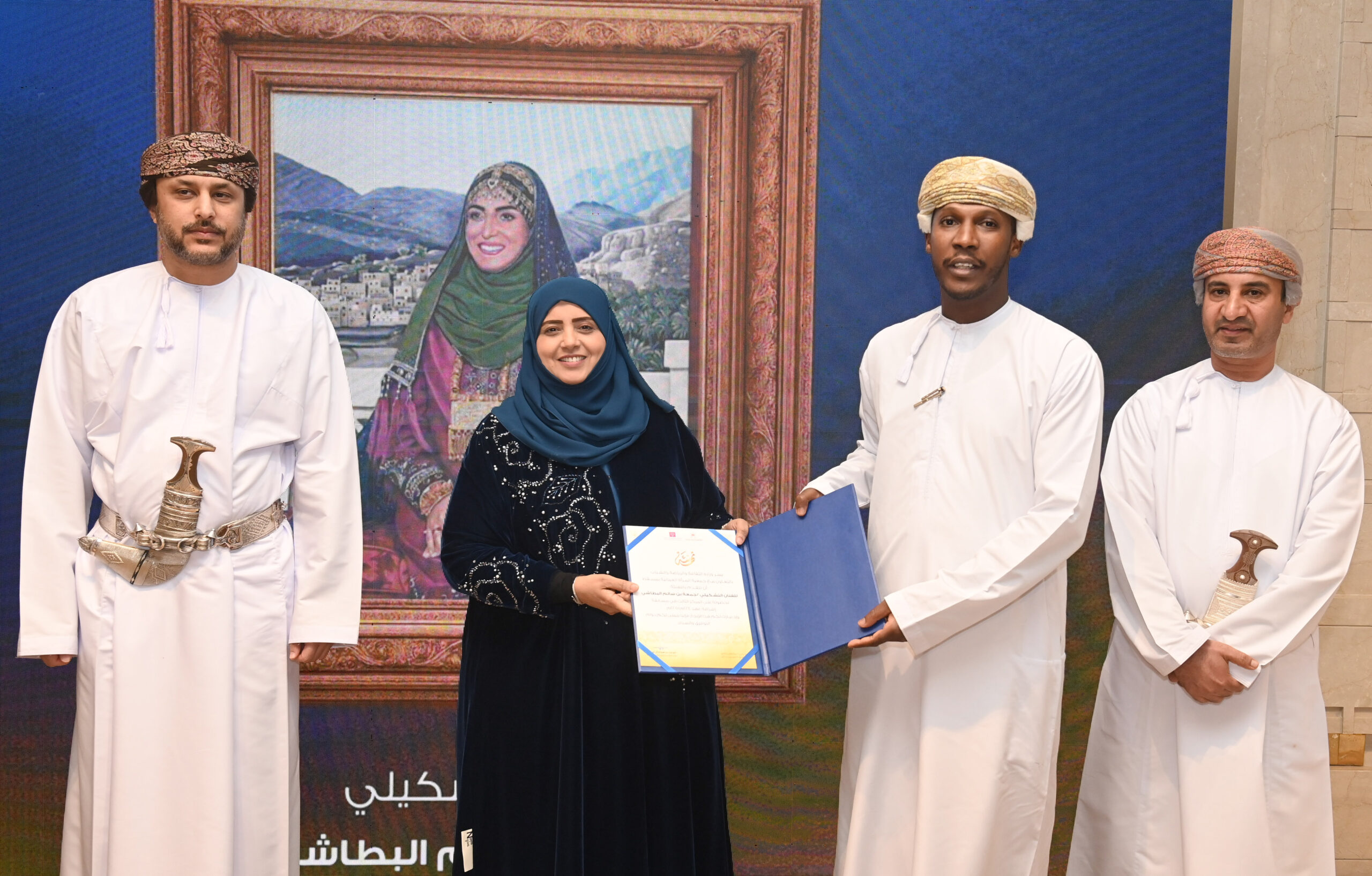 وأقيم الحفل تحت رعاية معالي الدكتور ليلى بنت أحمد النجار وزيرة التنمية الاجتماعية بدار الفنون الموسيقية بالأوبرا السُّلطانية العُمانية، بالتعاون مع جمعيات المرأة العُمانية في مختلف محافظات سلطنة عُمان، حيث حملت اللوحات دلالات رمزية عميقة مزجت بين روح الوطنية وعبقرية الإبداع، وأبرزت الحس الفني العُماني، بمشاركة 113 لوحة فنية جسدت طيفا واسعا من المدارس التشكيلية التي ينتمي إليها الفنانون العُمانيون.