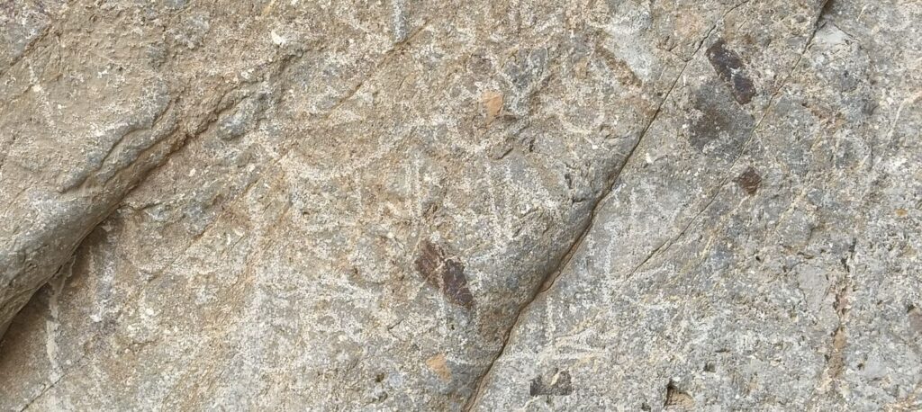 ويُعد هذا النوع من الرسومات نادراً في الفن الصخري بالمنطقة، كما تم توثيق كتابات عربية ورسومات جِمال تعود إلى الفترة الإسلامية، ما يشير إلى استمرار استخدام هذه الصخور وسيلة للتوثيق البصري والتعبير الثقافي حتى بعد دخول الإسلام إلى المنطقة.
