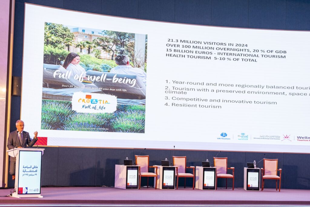 وبين أن الوزارة تبنت في سلطنة عُمان منهجية تقوم على إطلاق حزمة متكاملة من المنتجات السياحية المقرونة بتجارب استثنائية، أسهمت في توظيف الموارد الطبيعية والثقافية على نحو أمثل، وضمان استدامتها، وتعظيم الفائدة المجتمعية، وتعزيز حضور المحتوى المحلي، وترسيخ ارتباط السائح بالإنسان والمكان، منوهًا بأن من بين هذه المنتجات السياحة الاستشفائية التي تجمع بين التأمل والاستجمام والاسترخاء، وتعزيز الصحة النفسية والبدنية، لتشكل رافدًا مكملاً لبقية المنتجات السياحية.
