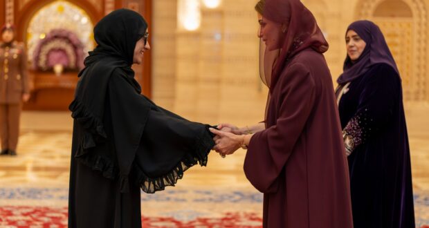 تفضّلت السّيدةُ الجليلةُ حرمُ جلالةِ السُّلطان، حفظهَا اللهُ ورعاهَا، صباح اليوم، بقصر البركة العامر، بتكريم عددٍ من الشّخصيّات النّسائيّة العُمانيّة من مختلف القطاعات، احتفاءً بيوم المرأة العُمانيّة، وهُنّ: صاحبةُ السُّمو السّيدة الدّكتورة شريفة بنت سالم بن علي آل سعيد، والدّكتورة أروى بنت زكريا بن يحيى الريامية، والدّكتورة آمنة بنت سيف بن محمد آل عبد السّلام، والدّكتورة حمدة بنت حمد بن هلال السّعدية والدّكتورة خالصة بنت حمد بن محمد البحريّة، وخديجة بنت ناصر بن جواد الساعاتية، وخولة بنت زايد بن سُلطان الشحيّة، والدّكتورة خولة بنت سعيد بن سيف الحارثية، ورزان بنت حمد بن سالم الكلبانية، والمهندسة رقية بنت أحمد بن حمود الشيذانية، وشريفة بنت حسين بن قاسم اليافعية، وشيخة بنت يوسف بن عبد الله الفارسية، وغالية بنت علي بن محمد المشيخية وتسلمت بالإنابة عنها ابنتها، وفخرية بنت سيف بن خلفان الشيبانية، والدّكتورة فريال بنت علي بن خميس اللواتية، وكلثم بنت حمود بن علي المقبالية، والدّكتورة كوثر بنت سليمان بن أحمد البوسعيدية، ومريم بنت راشد بن محمد اليزيدية، والدّكتورة نورة بنت سالم بن عبد الله الخليلية، والدّكتورة وردة بنت عبد الرحمن بن سالم بالخير.