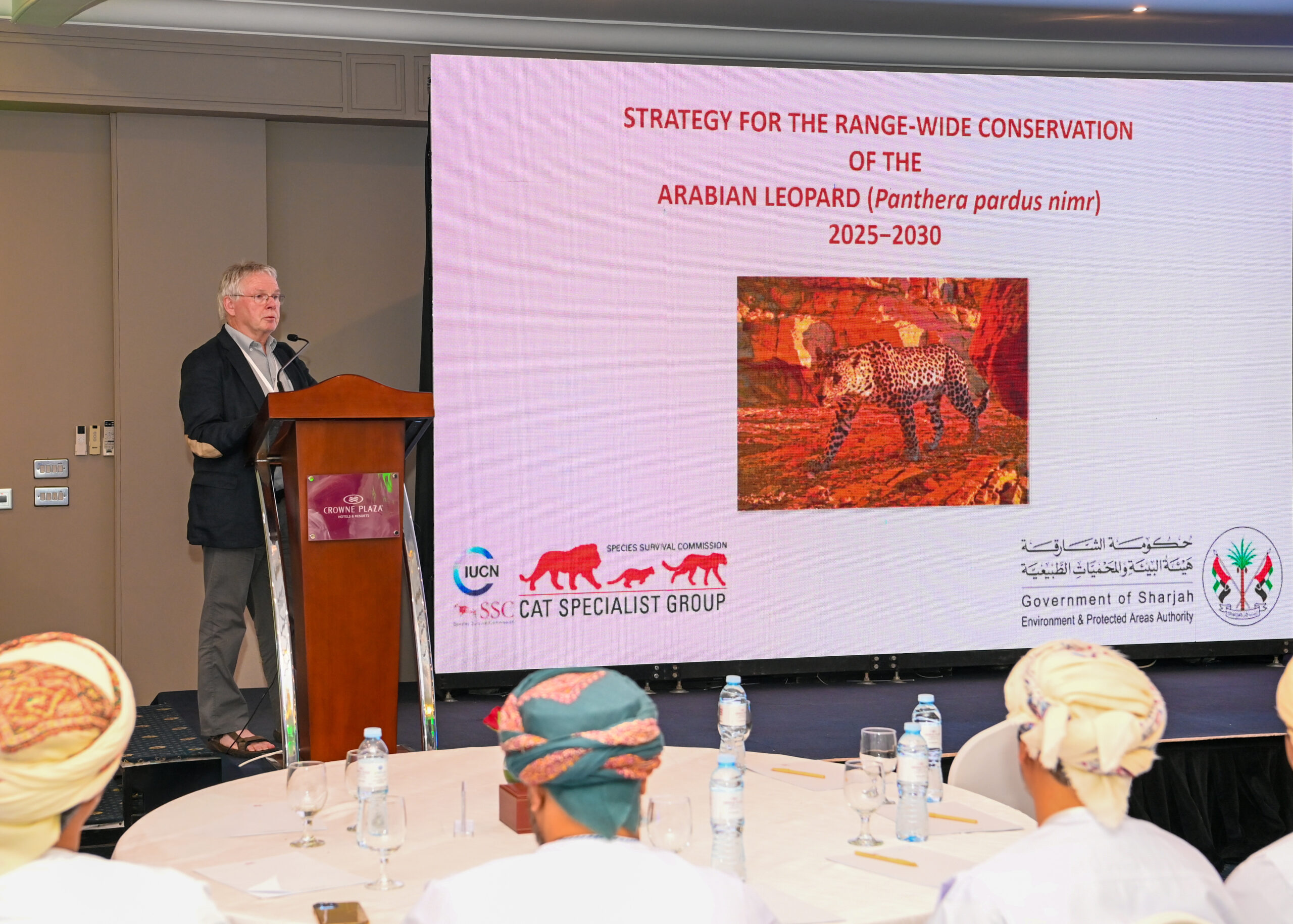 رعى افتتاح الحلقة المهندس سليمان بن ناصر الأخزمي، نائب رئيس هيئة البيئة، بمشاركة عدد من الخبراء والمختصين من الاتحاد الدولي لصون الطبيعة (IUCN)، وصندوق النمر العربي، والهيئة الملكية لمحافظة العلا (RCU) بالمملكة العربية السعودية، إلى جانب فريق صون النمر العربي في سلطنة عُمان.