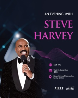 ستمنح هذه الأمسية جمهور قطر فرصة فريدة للتفاعل مباشرة مع النجم العالمي ورائد الأعمال والمتحدث التحفيزي ستيف هارفي، حيث ستتضمن الأمسية جلسة ملهمة وغنية بالأفكار تسلط الضوء على القيادة، وريادة الأعمال، والنمو الشخصي.، علما أن الفعالية متاحة للحضور من عمر 12 عامًا فما فوق.