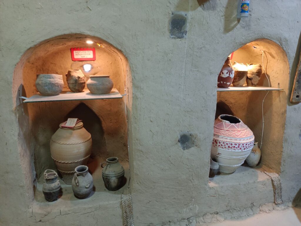 وبين أن الباب الرئيس للبيت تمت صناعته من خشب العلعلان وهي من الأشجار المعمرة في سلطنة عُمان وأسقفه من جذوع النخيل وبعض الأماكن من أخشاب السدر المحلية. وأشار إلى أن البيت تم ترميمه خلال فترات زمنية قديمة آخرها في عام 1389 هجرية.