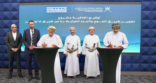 وقّعت وزارة النقل والاتصالات وتقنية المعلومات، اليوم على اتفاقية مشروع تطوير طريق الموج والجزء المرتبط به من طريق 18 نوفمبر، بتكلفة إجمالية تبلغ أكثر من 44 مليون و940 ألف ريال عُماني.