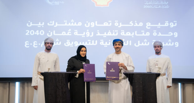 بتناغمٍ يجمع بين رؤية عُمان 2040 والمسؤولية المشتركة، وقَّعت شركة شل العُمانية للتسويق (شل عُمان) مُذكرة تعاون مع وحدة متابعة تنفيذ رؤية عُمان 2040؛ بهدف تعزيز مسارات التعاون الداعمة لمسيرة التنمية الشاملة والمستدامة في سلطنة عُمان؛ وذلك خلال اللقاء السنوي الأول لشركاء رؤية عُمان 2040 بفندق كراون بلازا القرم؛ وذلك في خطوةٍ نوعيةٍ تؤكد التقاء خبرات القطاع الخاص مع الطموحات المستقبلية للسلطنة ورؤيتها بعيدة المدى.
