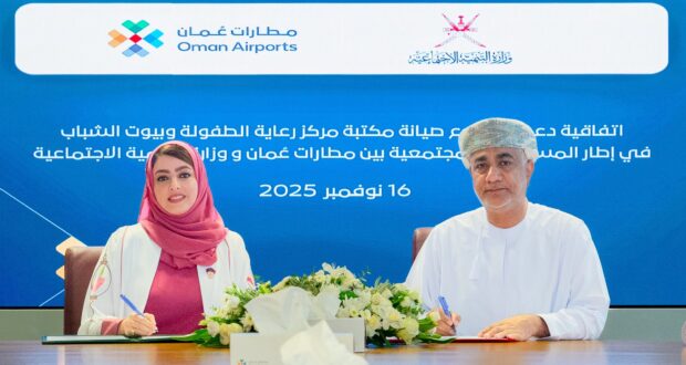 وقَّعت “مطارات عُمان”، اليوم، اتفاقية تعاون مع وزارة التنمية الاجتماعية لدعم مشروع صيانة مكتبة مركز رعاية الطفولة وبيوت الشباب.