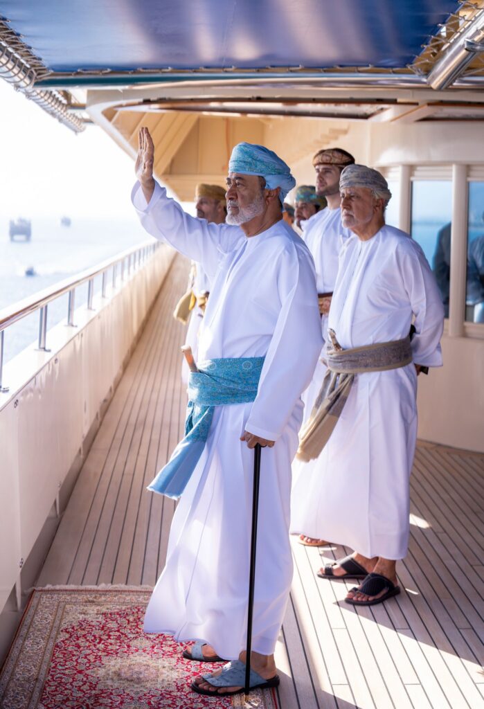 وقد أبحر اليختُ السُّلطانيُّ (فلكُ السّلامة) المُقلُّ لجلالةِ القائد الأعلى من ميناء السُّلطان قابوس بولاية مطرح تحفّهُ عنايةُ المولى عزّ وجلّ، وترافقه ثُلّةٌ من السُّفن الشّراعيّة التقليديّة، في مشهدٍ يُجسّد أصالةَ التّراث البحري العُماني واعتزازَ أبناء الوطن بتاريخهم العريق، الذي يعكسُ تاريخ عُمان البحري الموشّح بقيم الأصالةِ والعراقةِ، وما وصلت إليه البحريّةُ السُّلطانيّةُ العُمانية من تطوير وحداثةٍ.