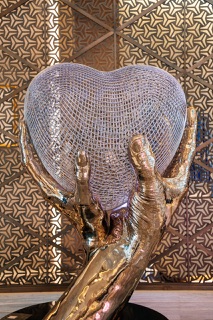 تمّت صناعة المنحوتة من البرونز المصقول، مع قلب شبكي داخلي من الفولاذ المقاوم للصدأ، وتجسّد تحفة “ماي هارت إز يورز” (قلبي ملكك) الرابط العميق بين روحين، حيث يضع كل منهما كيانه بالكامل بين يدي الآخر. يُظهر العمل ببراعة يدان منحوتتان وهما تقدمان قلباً مضاءً من الداخل، يتغير بألوان مُتعدّدة ليعكس انسيابية وتنوّع المشاعر الإنسانية. تتيح هذه التحفة المذهلة لزوّار الفندق فرصة للتوقف والتأمل، حيث تجذبهم بشكلها البصري المميز، وما تحمله من إيحاء دافئ ورمزية قوية للاتحاد والإنسانية المشتركة.