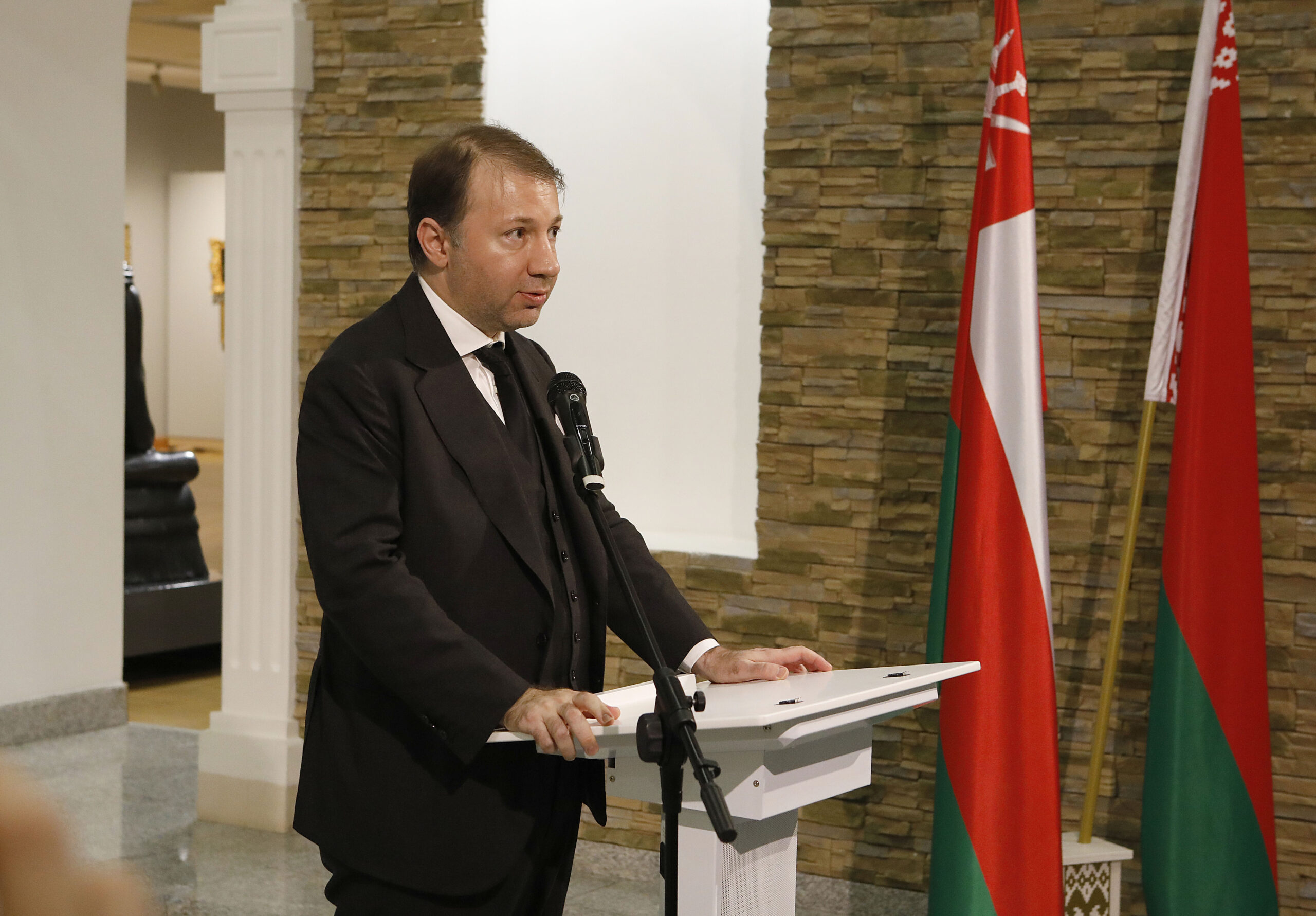 وقال سعادة جمال بن حسن الموسوي، الأمين العام للمتحف الوطني، في كلمته خلال حفل الافتتاح: إن تنظيم هذا المعرض يأتي على أثر الزيارة الرسمية، لفخامة الرئيس ألكسندر لوكاشينكو، رئيس جمهورية بيلاروس، إلى سلطنة عُمان في ديسمبر 2024م، وتوجيهه لاستضافة معرض “بهاء الفضة: مقتنيات من البلاط العُماني” في جمهورية بيلاروس أثناء زيارته للمتحف الوطني.