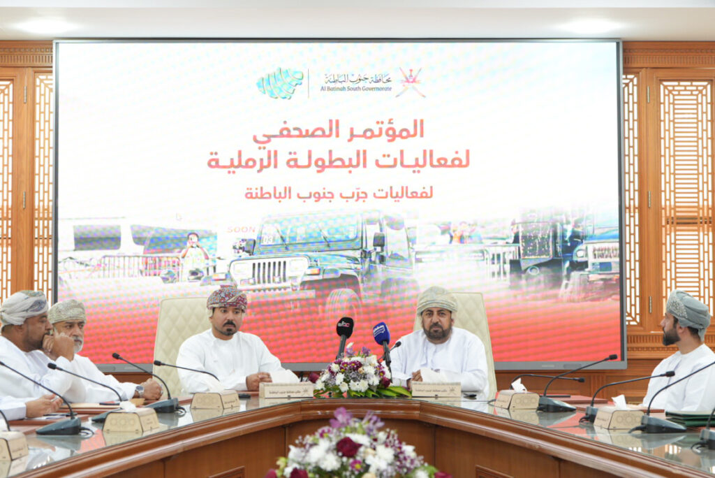 وقال سعادة المهندس محافظ جنوب الباطنة خلال المؤتمر: إن الإعلان اليوم يأتي للإفصاح عن تفاصيل الفعالية الرياضية للسباقات الرملية، التي ستُقام هذا العام في رمال الأبيض بولاية نخل، وتتضمن عدداً من المنافسات المتخصصة، من بينها مسابقة التسارع الرملي للدراجات والسيارات، إلى جانب أنشطة استعراضية موجهة لفئة الشباب والهواة.
