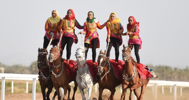 كما تتخلّلُ أشواطَ السباق عروضٌ متنوعة في رياضات الفروسية يقدمها فرسان وفارسات الخيالة السُّلطانية، مقرونةً بعددٍ من المقطوعات الموسيقيّة المتنوّعة، إضافةً إلى مشاركةِ مجموعةٍ من المواطنين بتقديم بعض الفنون العُمانيّة المرتبطة بالخيل.