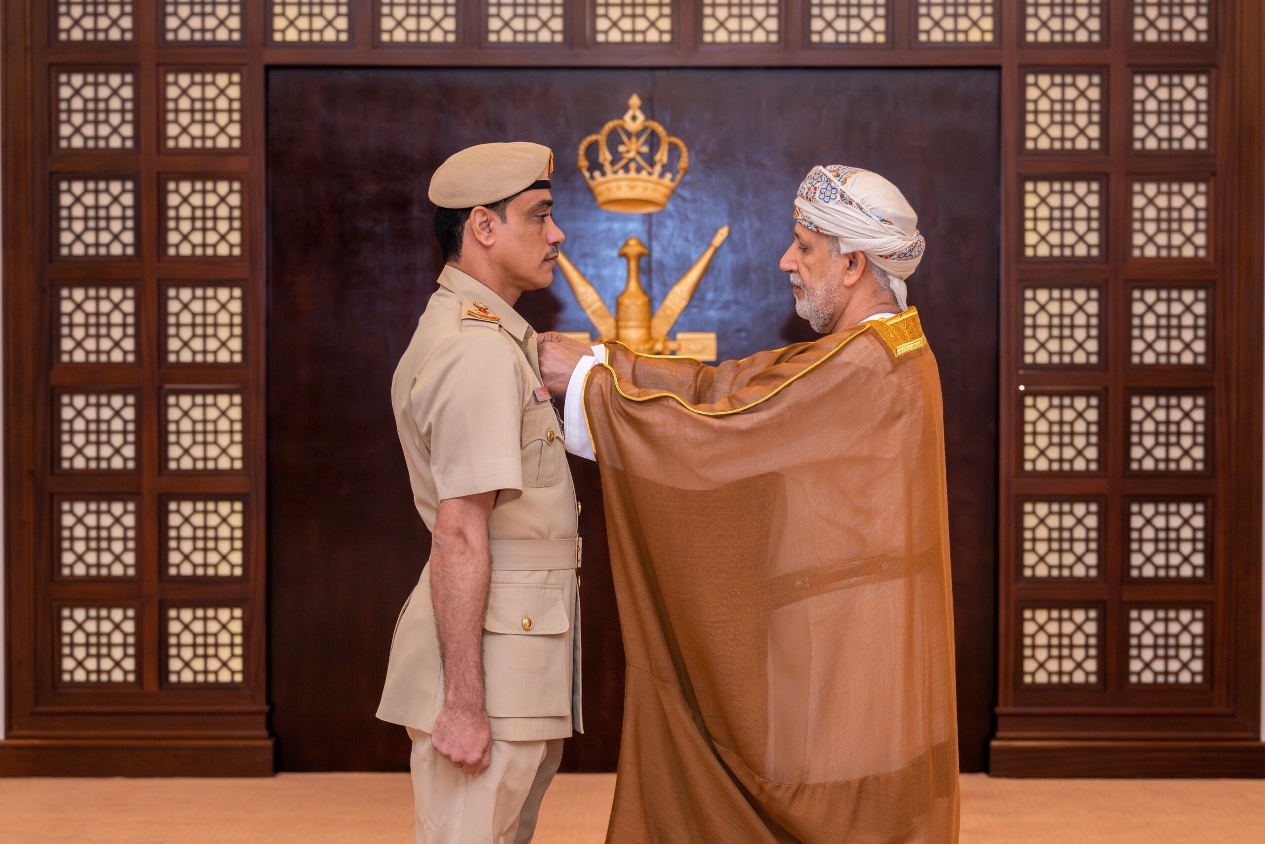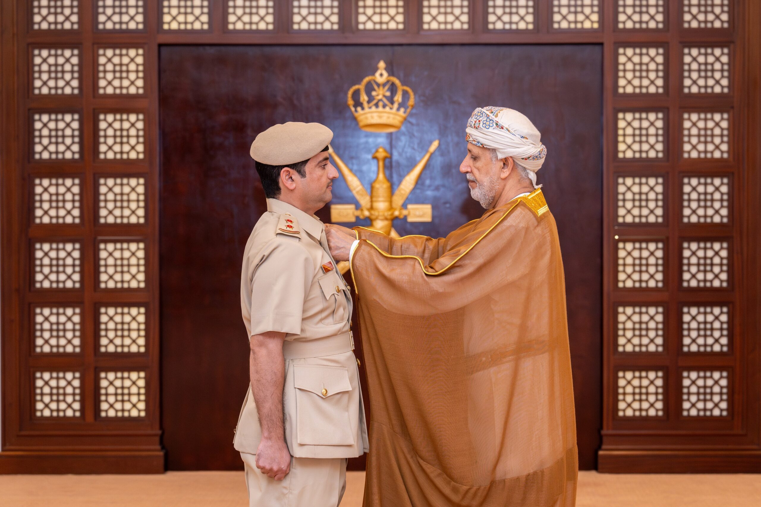 تفضّل حضرةُ صاحبِ الجلالةِ السُّلطان هيثم بن طارق المعظم القائد الأعلى، حفظهُ اللهُ ورعاهُ، فأنعم بميداليتي الخدمة المُمتازة والثناء السُّلطاني على عددٍ من الضُّباط وضُبّاط الصفّ من منتسبي شؤون البلاط السُّلطاني.