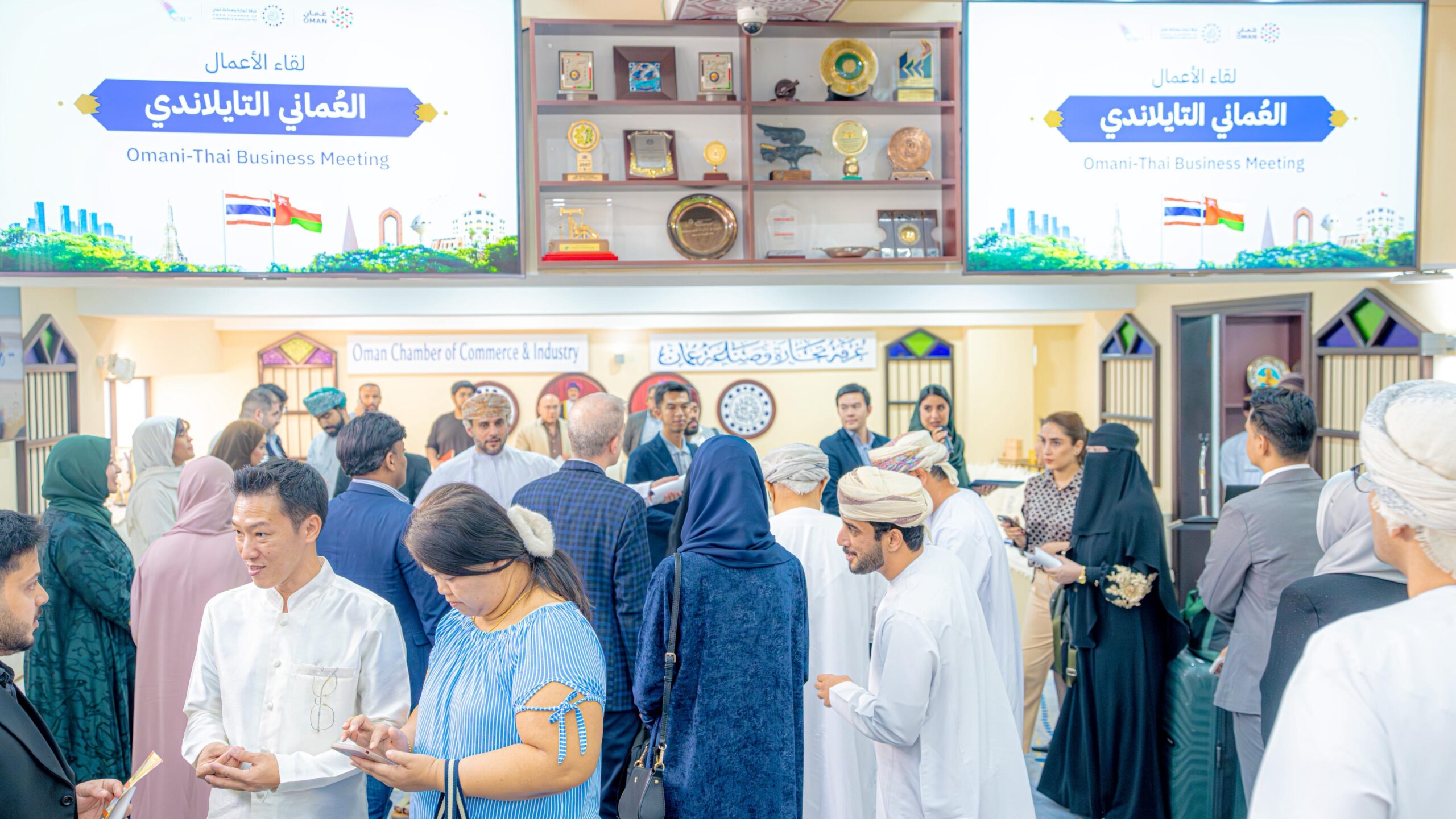 نظمت غرفة تجارة وصناعة عُمان لقاء أصحاب الأعمال العُماني ـ التايلندي وذلك في إطار جهودها الرامية إلى تعزيز العلاقات الاقتصادية الدولية ودعم حضور القطاع الخاص العُماني في الأسواق العالمية، حيث أكد اللقاء على تعزيز الشراكات الاقتصادية بين القطاع الخاص في البلدين حيث عقد اللقاء بحضور سعادة الشيخ فيصل بن عبدالله الرواس رئيس مجلس إدارة غرفة تجارة وصناعة عمان وعدد من أعضاء مجلس الإدارة وسعادة وارووني بان كراجانغ سفيرة تايلند لدى سلطنة عُمان .