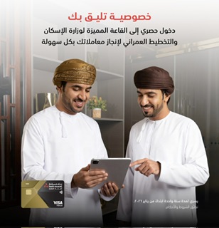 حرصاً منه على تطوير مجموعة خدماته ومنتجاته لتعزيز تجربة الزبائن المصرفية، أعلن بنك مسقط، المؤسسة المالية الرائدة في سلطنة عُمان، عن تقديم عرض حصري لزبائن أصالة للأعمال المصرفية المميزة يتضمن فرصة الدخول إلى القاعة المميزة لوزارة الإسكان والتخطيط العمراني، حيث تُوفر هذه القاعة خدمات مريحة وسريعة وتقدم دعمًا كاملاً لمتابعة مختلف الخدمات والمعاملات التي تقدمها الوزارة.