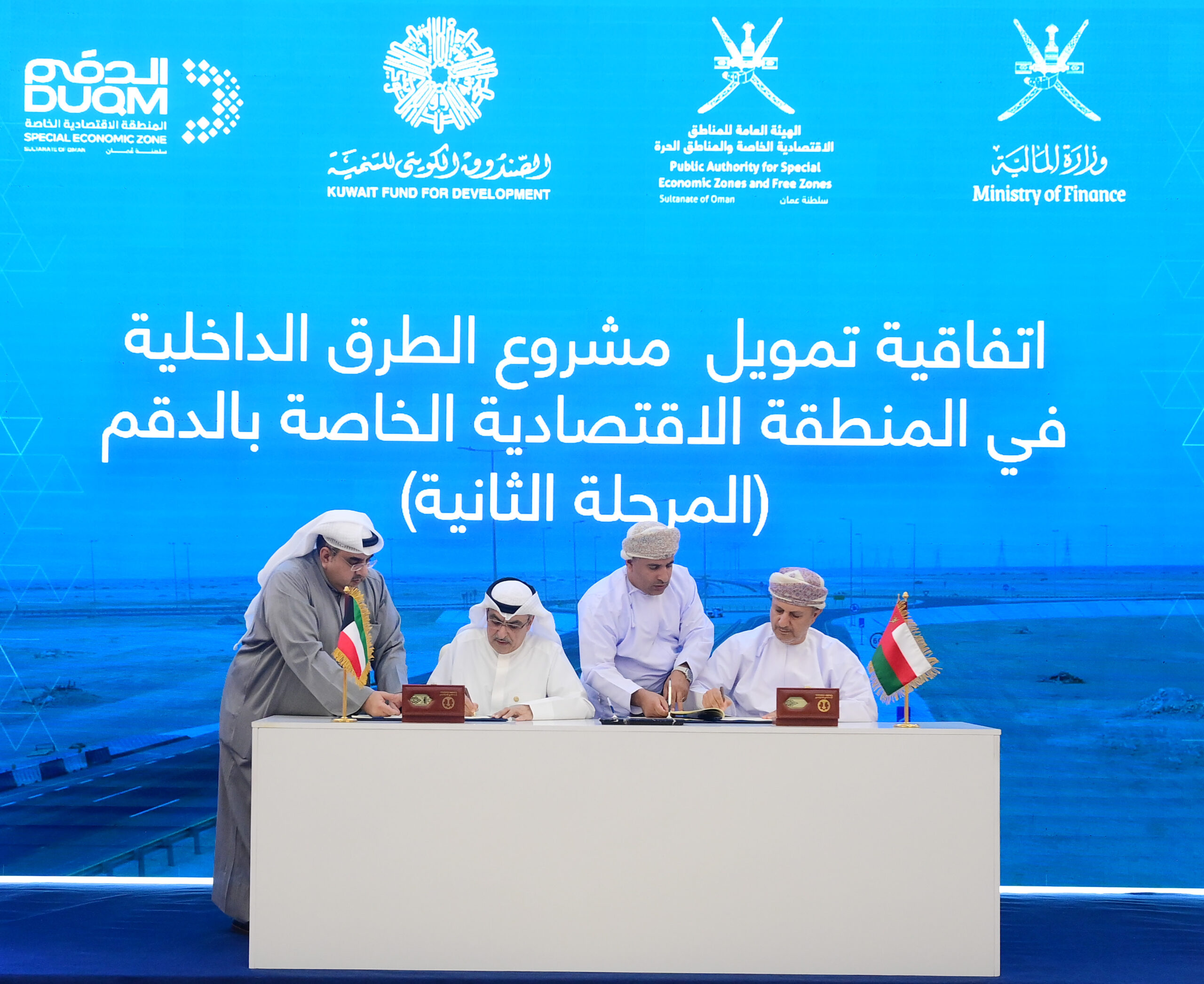 وقّعت سلطنة عُمان، اليوم، اتفاقية تمويل مع الصندوق الكويتي للتنمية الاقتصادية العربية للإسهام في تمويل تنفيذ المرحلة الثانية من مشروع الطرق الداخلية في المنطقة الاقتصادية الخاصة بالدقم.