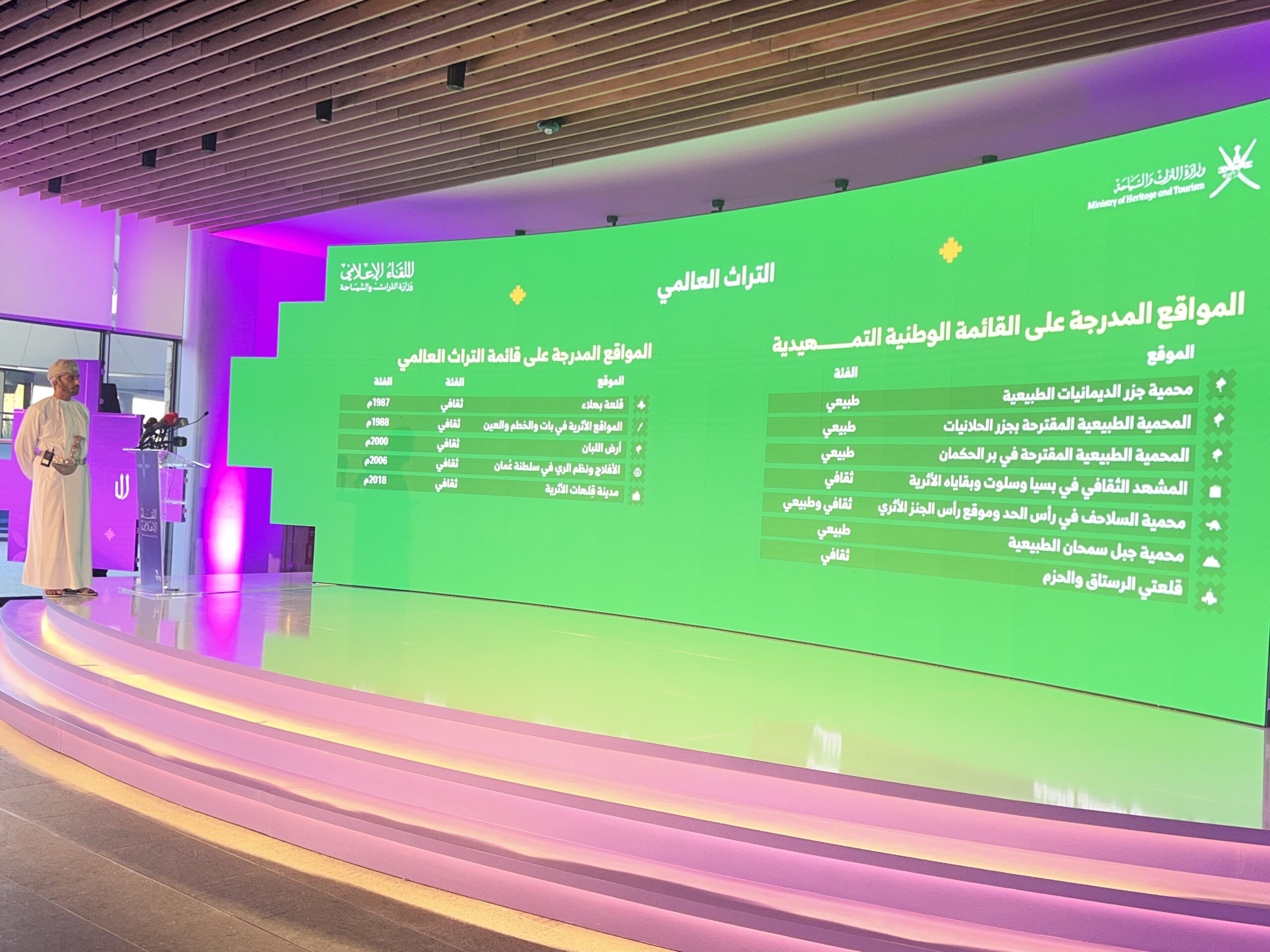 أما في مجال التراث، فقد تحققت منجزات نوعية تمثلت في إدراج خمسة مواقع ثقافية في قائمة التراث العالمي، وسبعة مواقع ثقافية وطبيعية في القائمة التمهيدية، إلى جانب استثمار وترميم عدد من المعالم التاريخية، وإصدار 50 إصدارًا علميًا وثّقت الإسهام الحضاري العُماني.