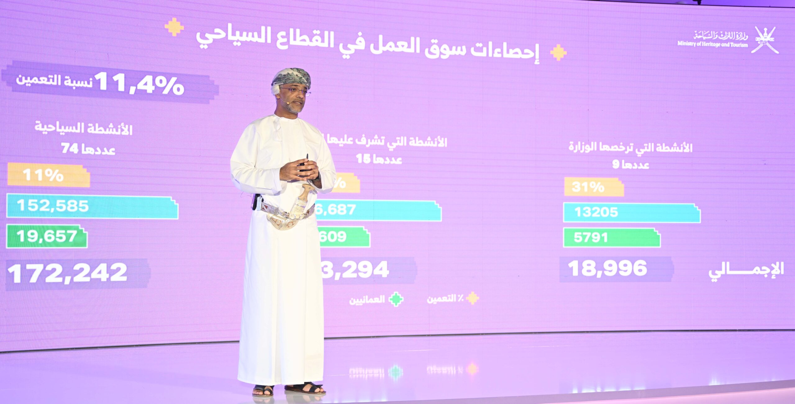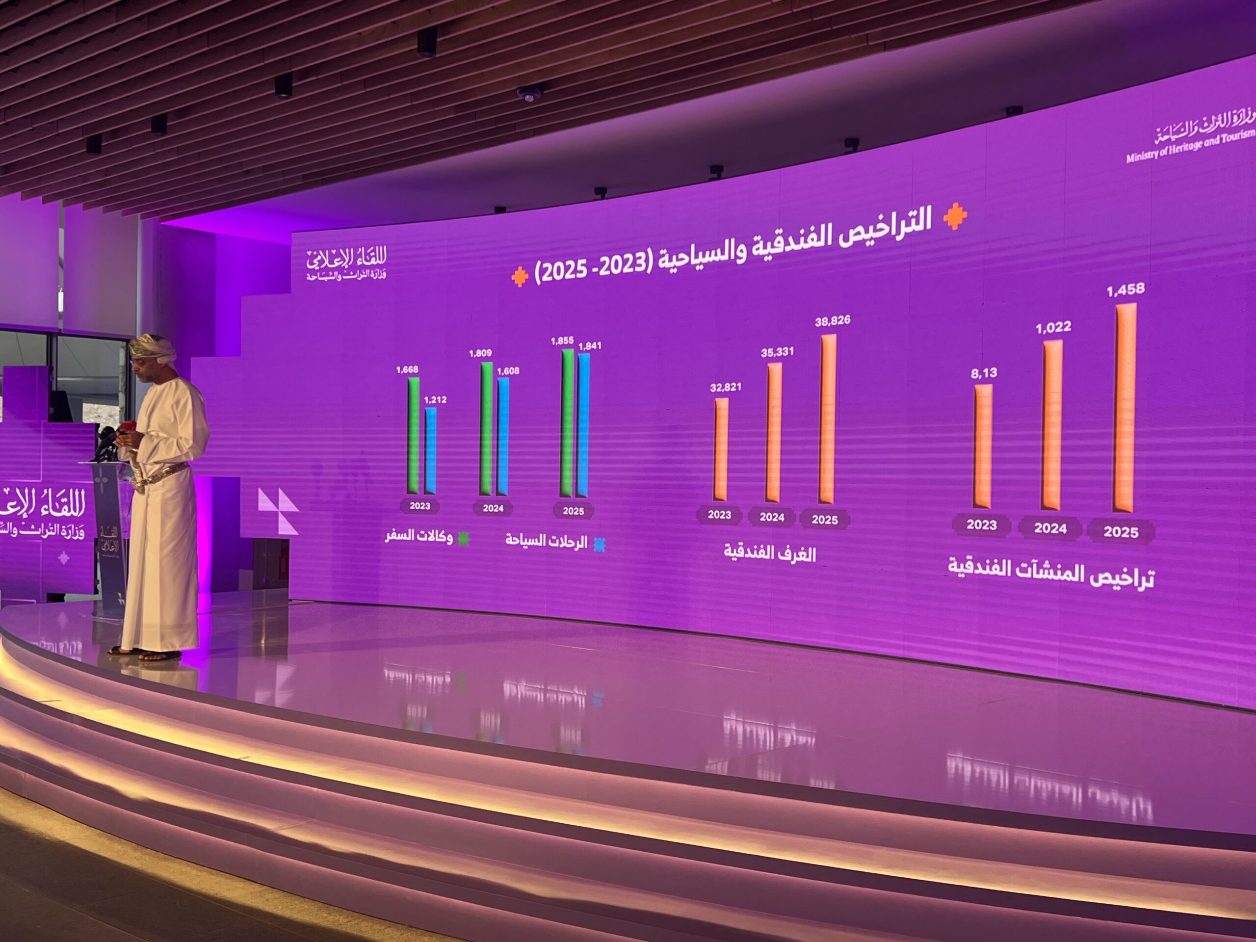وأوضح سعادته أن الجهود الترويجية التي نفذتها الوزارة أسهمت في تحقيق عوائد ترويجية مباشرة تجاوزت 69.8 مليون ريال عُماني، إضافة إلى تسجيل أكثر من 325 ألف ليلة فندقية نتجت عن الحملات الترويجية، ما يعكس كفاءة الإنفاق الترويجي وقدرته على تحقيق نتائج ملموسة. كما أشار إلى أن الأنشطة الإعلامية والتسويقية، سواء الرقمية أو التقليدية، حققت معدلات وصول واسعة، أسهمت في تعزيز الحضور الذهني لسلطنة عُمان كمقصد سياحي متنوع وأصيل.