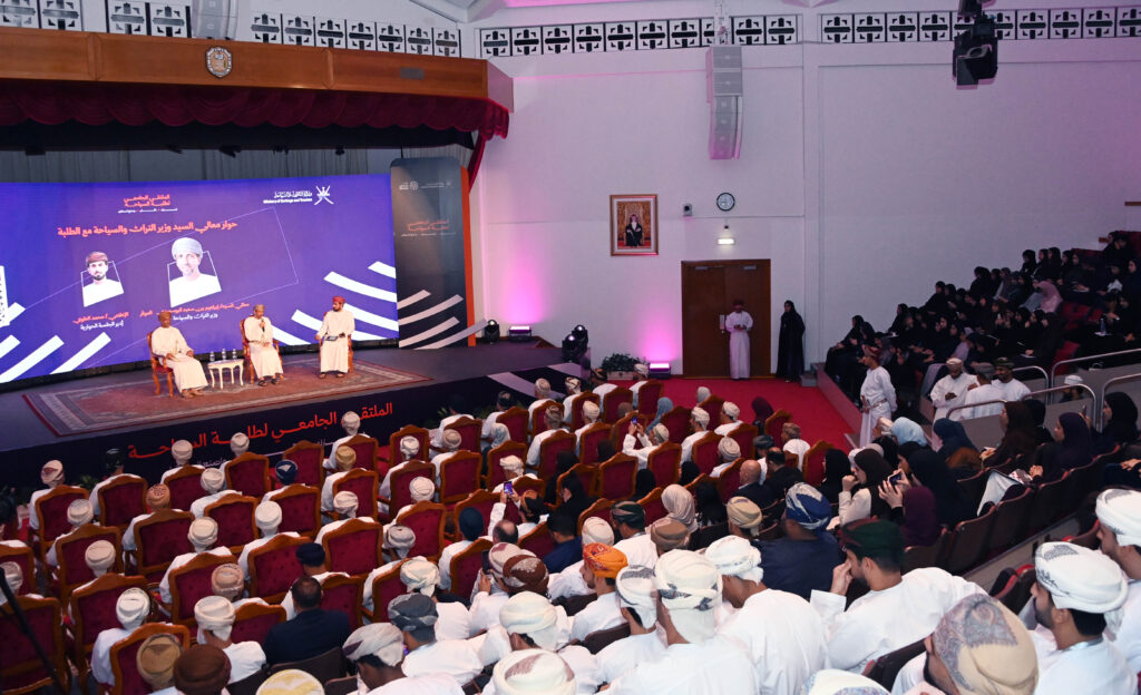 نظمت وزارة التراث والسياحة، امس الاثنين، الملتقى الجامعي لطلبة السياحة الذي عقد في رحاب جامعة السلطان قابوس، تحت رعاية صاحب السمو السيد الدكتور فهد بن الجلندى آل سعيد رئيس الجامعة، الملتقى حمل شعار “شارك.. ناقش.. واصنع المستقبل”، ويستهدف طلبة تخصص السياحة في السنة الأخيرة في مؤسسات التعليم العالي بهدف تعزيز التواصل المباشر مع الكفاءات الوطنية الشابة والاطلاع على تطلعاتهم وطموحاتهم المهنية في قطاع السياحة، والسعي إلى تعريف الطلبة بفرص العمل والتحديات المستقبلية في هذا القطاع الحيوي، وتشجيعهم على الاسهام بفعالية في تطوير السياحة ودعم مسيرة التنمية في سلطنة عمان.