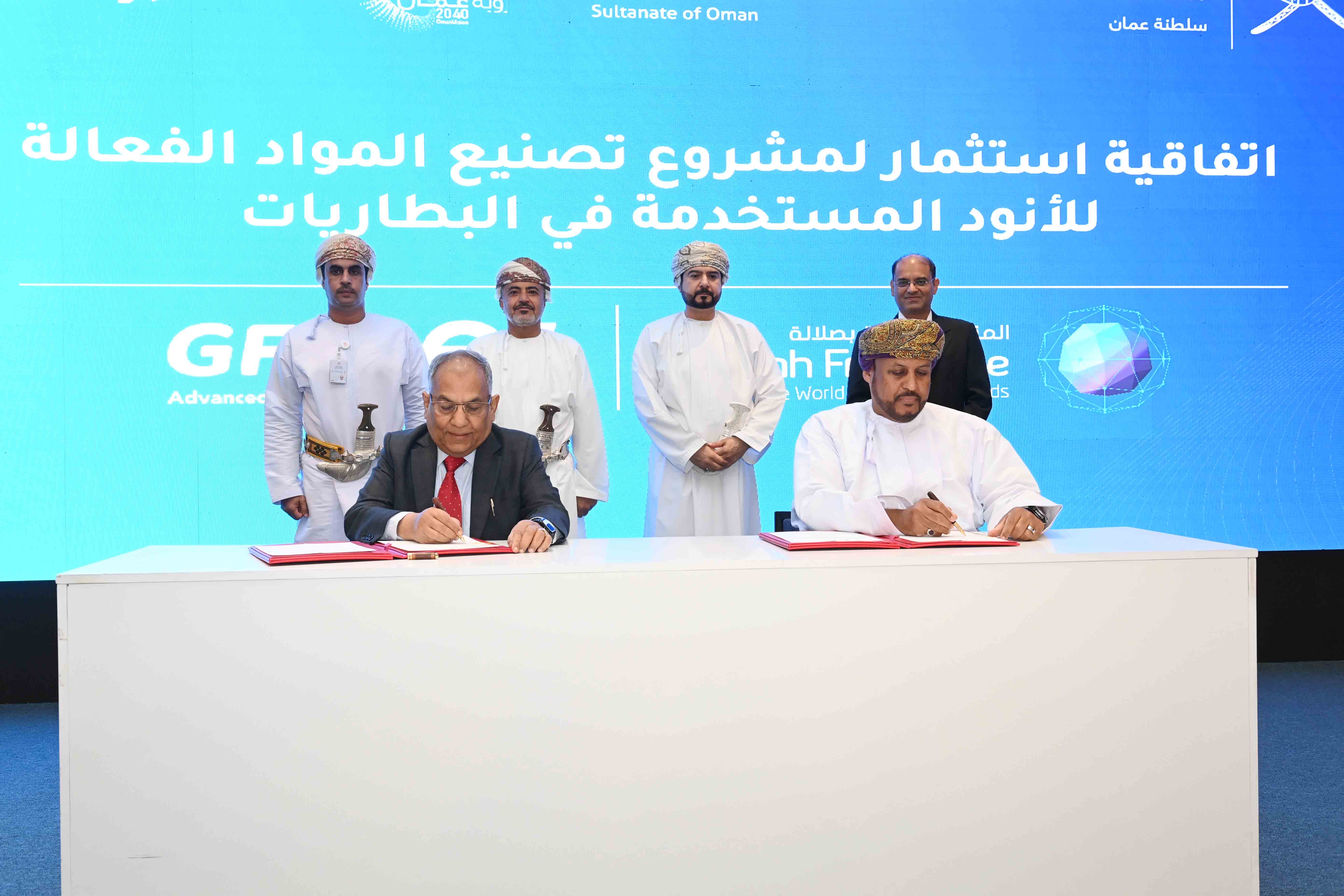 كما تم توقيع اتفاقية استثمار لإنشاء مشروع تصنيع المواد الفعّالة للأنود المستخدمة في بطاريات الليثيوم للمركبات الكهربائية بالمنطقة الحرة بصلالة بتكلفة استثمارية تبلغ 35 مليون ريال عُماني، وسيتم تنفيذ المشروع من قبل شركة جي إف سي إل إي في للمواد المتقدمة حيث يعد المشروع ثاني مشروع للشركة في قطاع المركبات الكهربائية في المنطقة الحرة بصلالة بعد توقيعها العام الماضي اتفاقية استثمار لمشروع المواد الكيميائية المتقدمة للبطاريات الكهربائية.